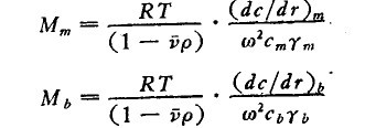 式中R=氣體常數(shù);T=絕對(duì)溫度;s=分子的沉降系數(shù);ν=分子的微分比容;ρ=溶劑的密度;dc/dr=大分子的濃度梯度;γm和γb分別代表管子彎月面和管底的輻射距離;cm和cb=分別代表在管于彎月面和管底大分子的濃度;Mm和Mb分別代表在管子彎月面和管底所得到的分子量的數(shù)值。