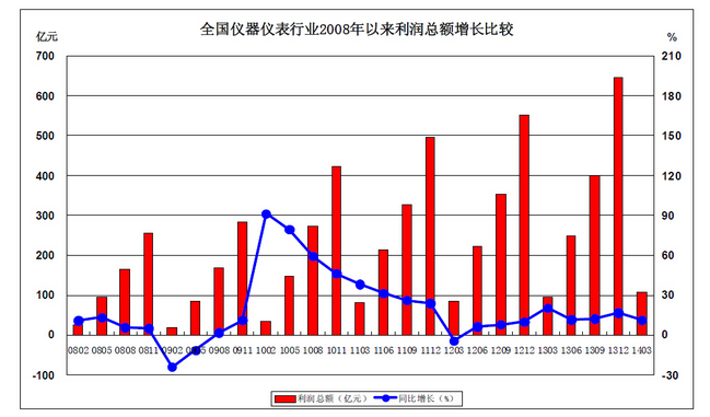 2、全國儀器儀表行業(yè)2008年以來利潤總額增長比較